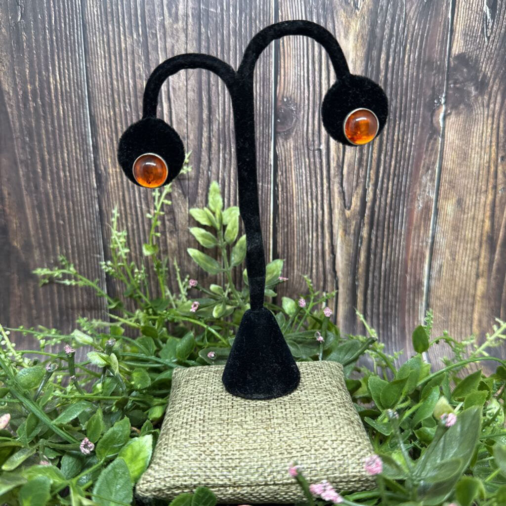 Amber & Sterling Stud Earrings