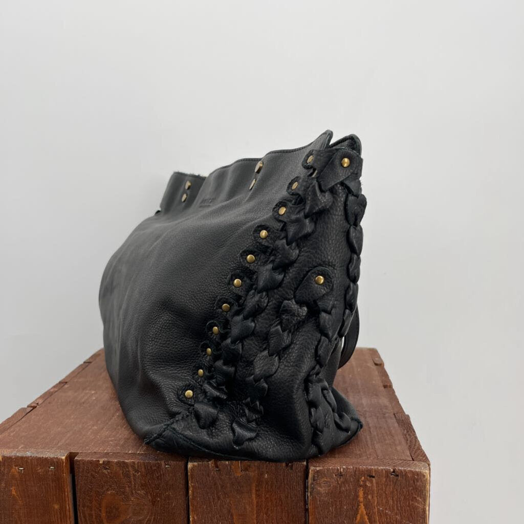 Pebbled leather, brass hardware, double handle