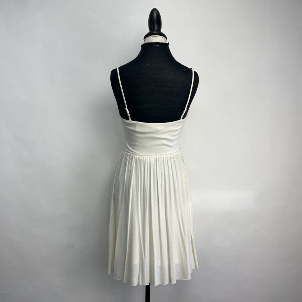 spaghetti straps, eyelet top, short midi, no print