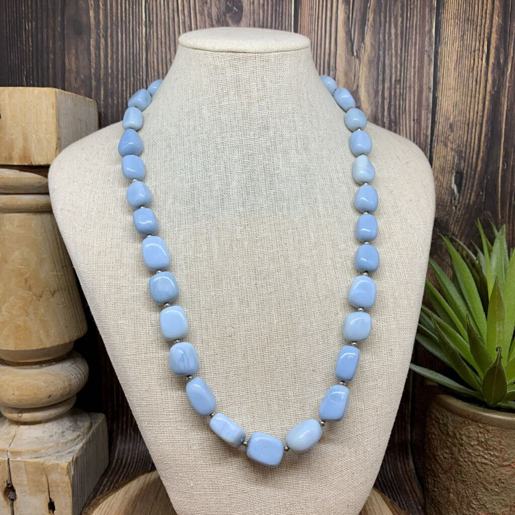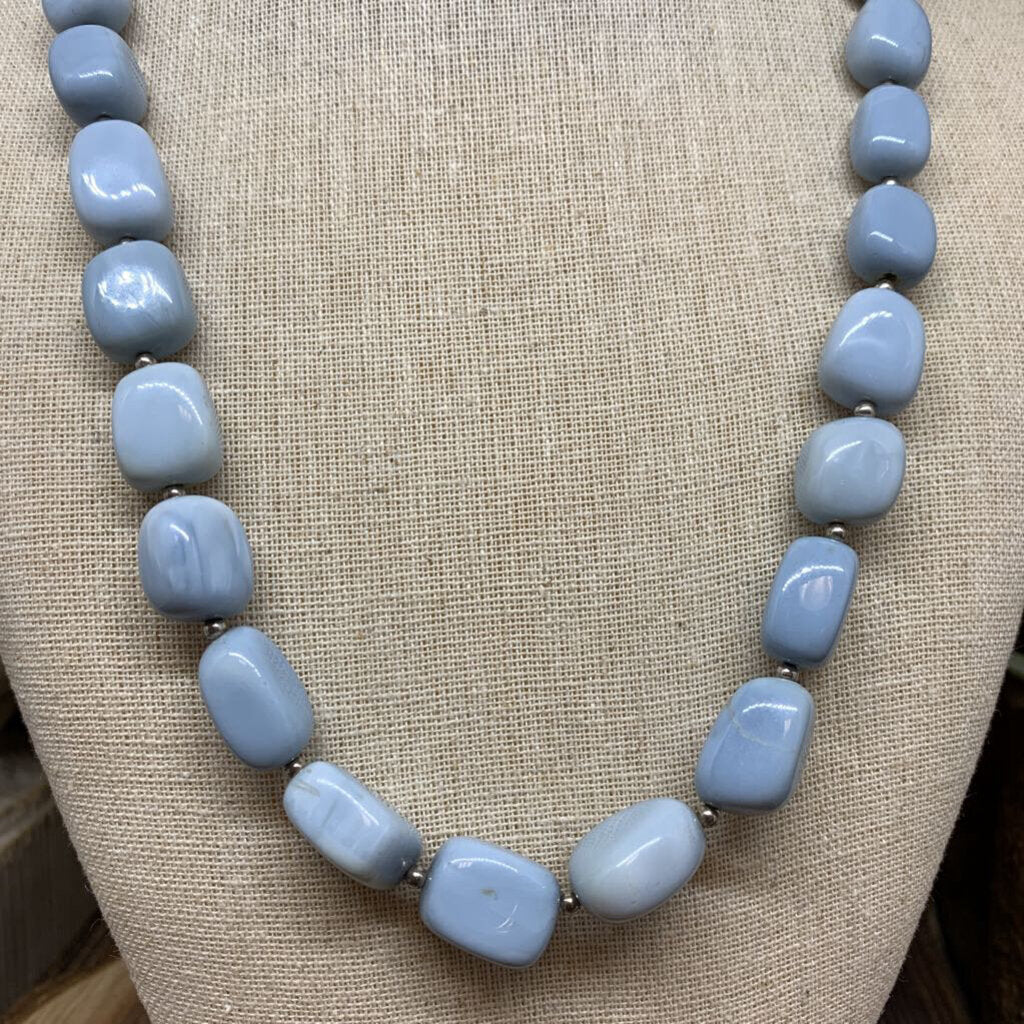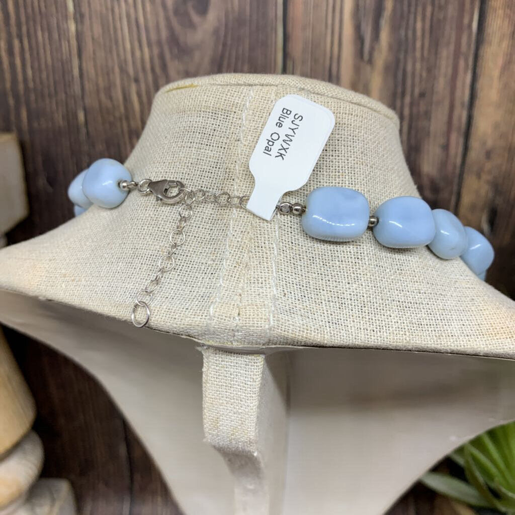 Polished Blue Opal Stones, Sterling Silver Clasp