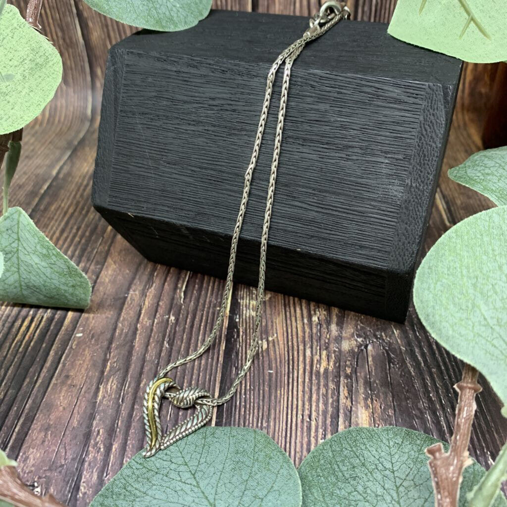 Silver Tone Chain, Twisted Open Heart Pendant with Gold Tone Accents, Lobster Clasp