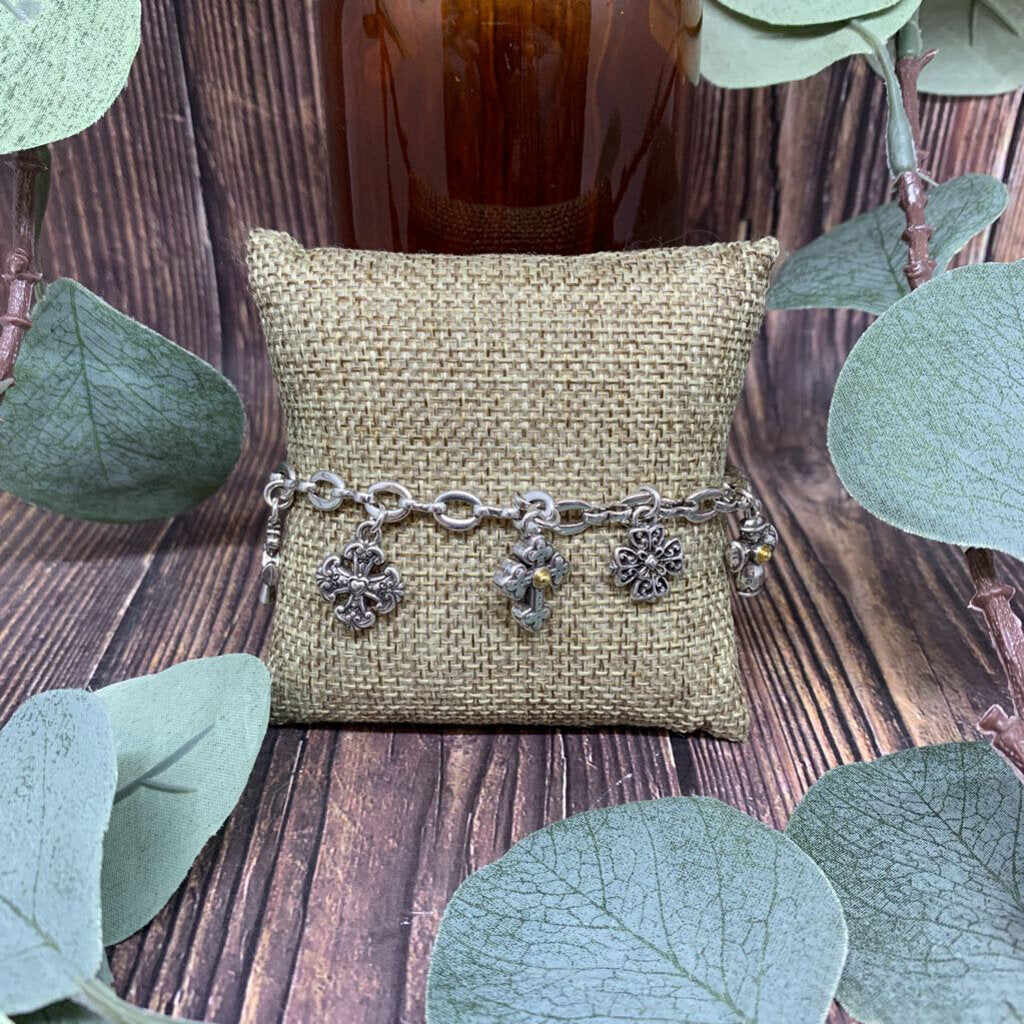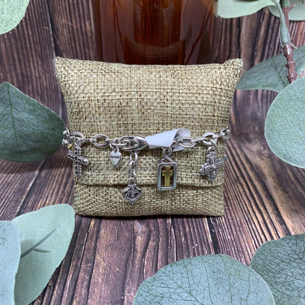 Silver Tone Chain, Various Cross Design Charms, Lobster Clasp