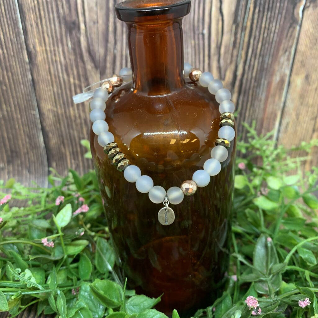Frosted and Faceted Metallic Beads, Sterling Chan Luu Charm, Stretch Cord