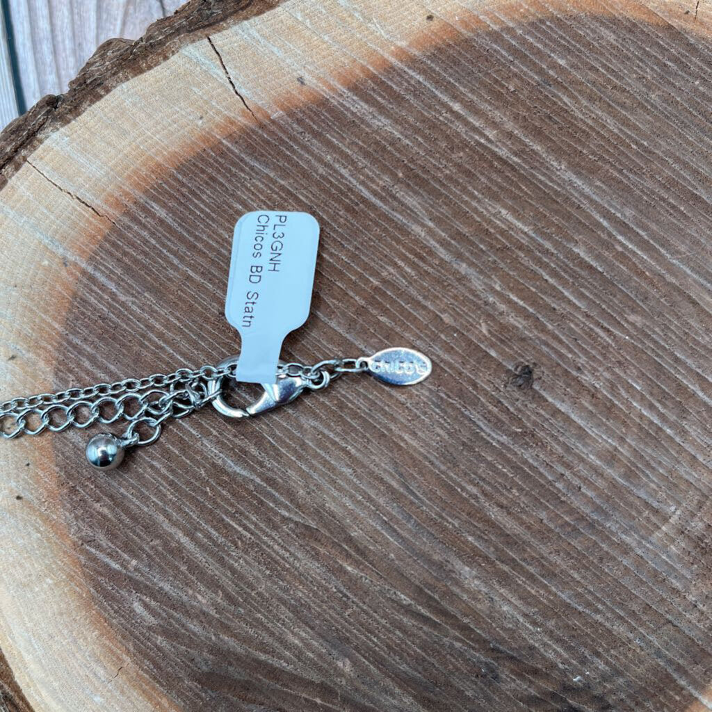 Silver Tone Chain, Faceted Blue Bead Stations, Lobster Clasp