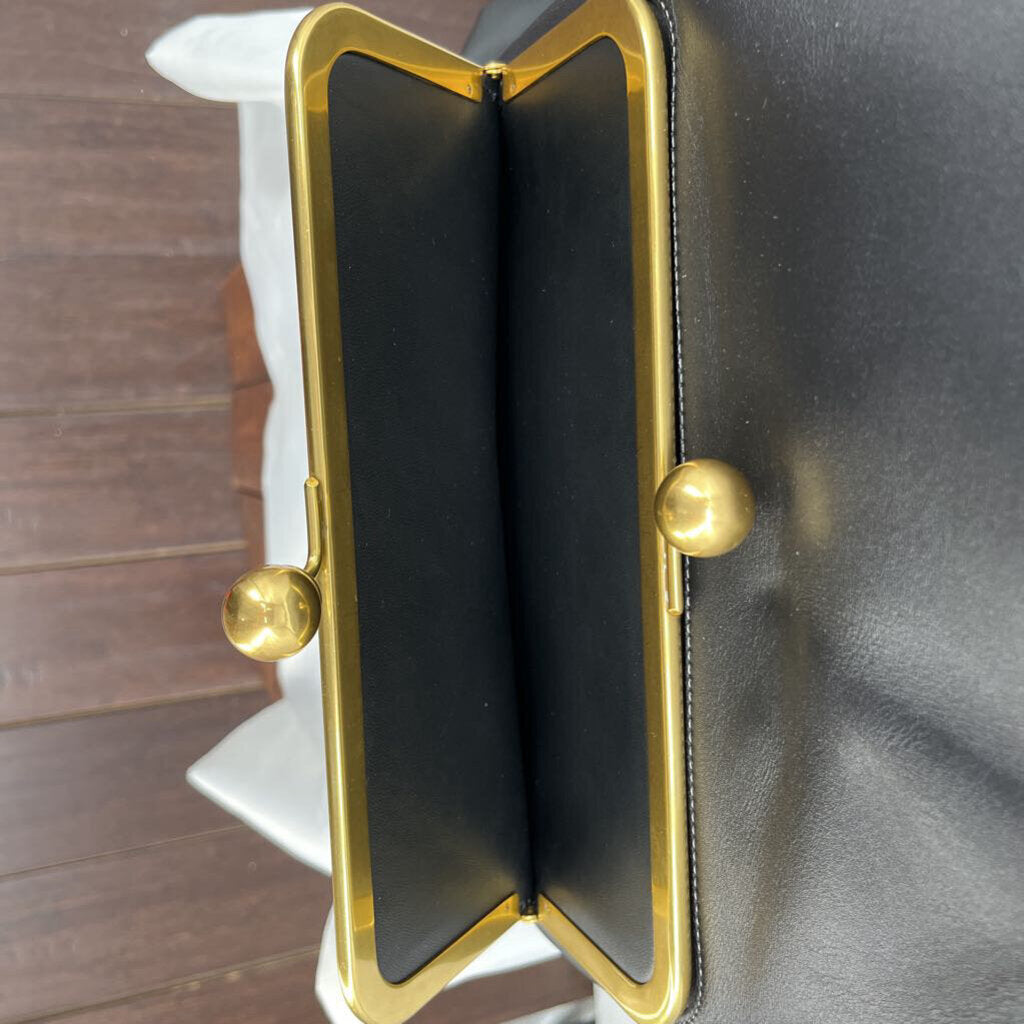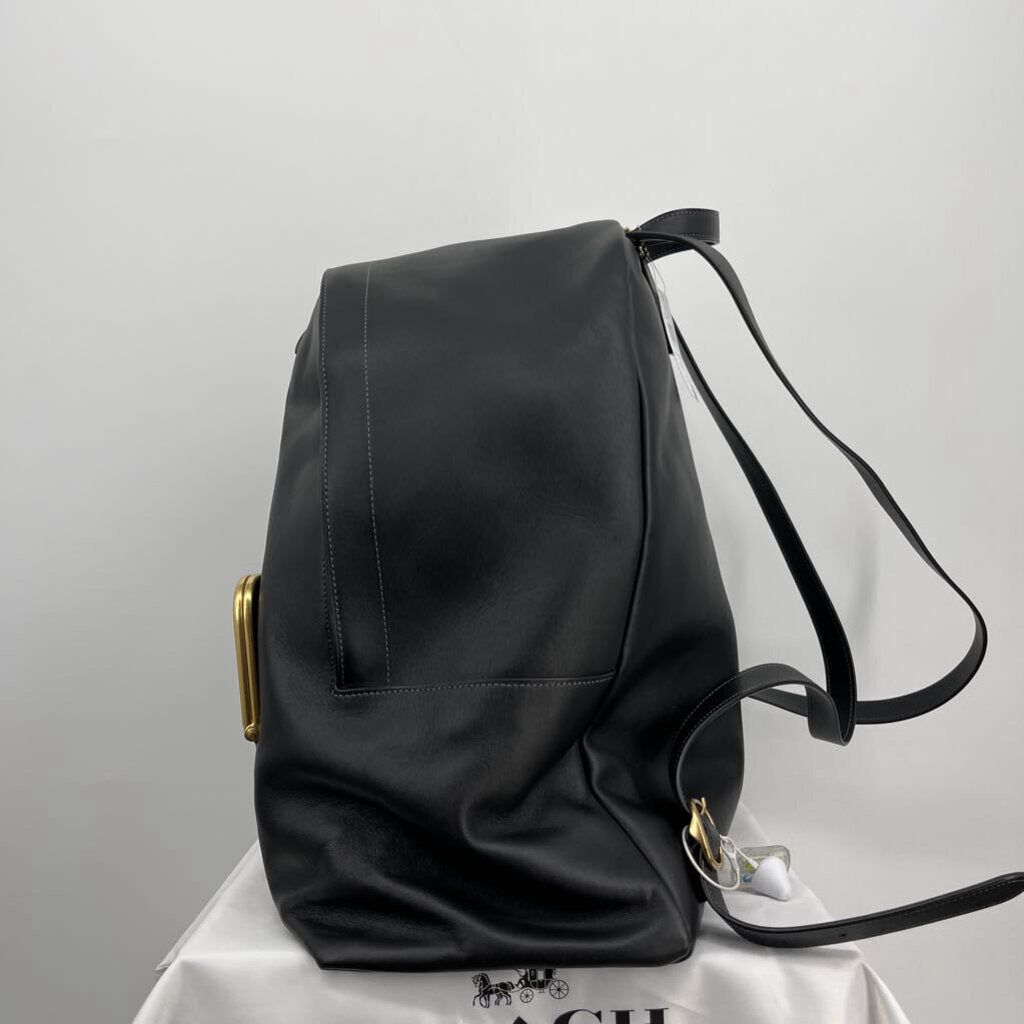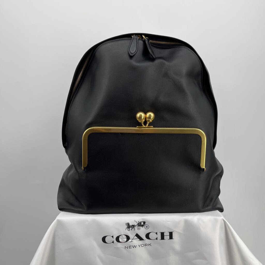 New with tags, leather, brass hardware, kiss lock coin urse on front, zip closure