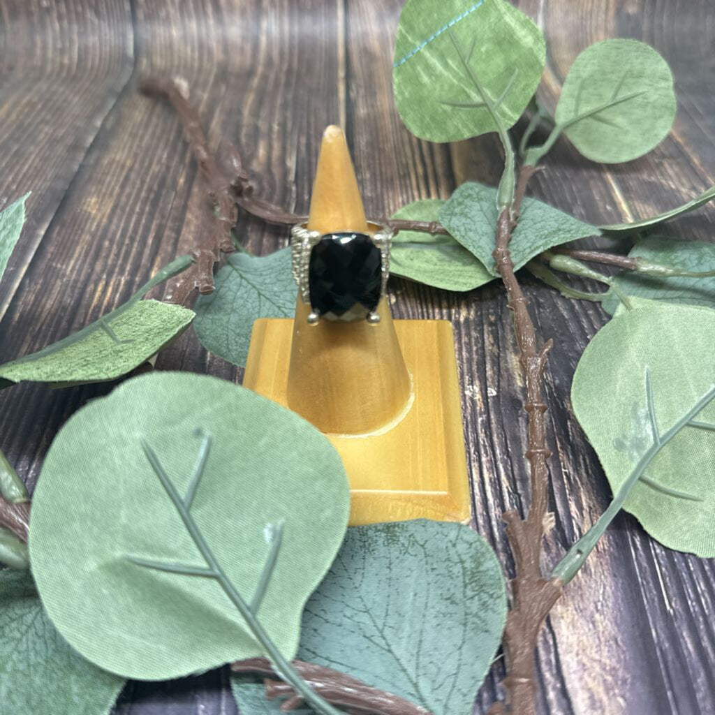 Onyx Gem with Diamond Accents, Sterling Silver Cable Motif Band
