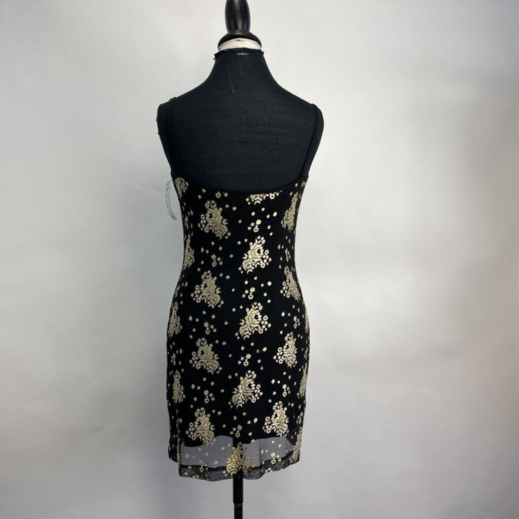 spaghetti straps, floral embroidered, mesh netting overlay