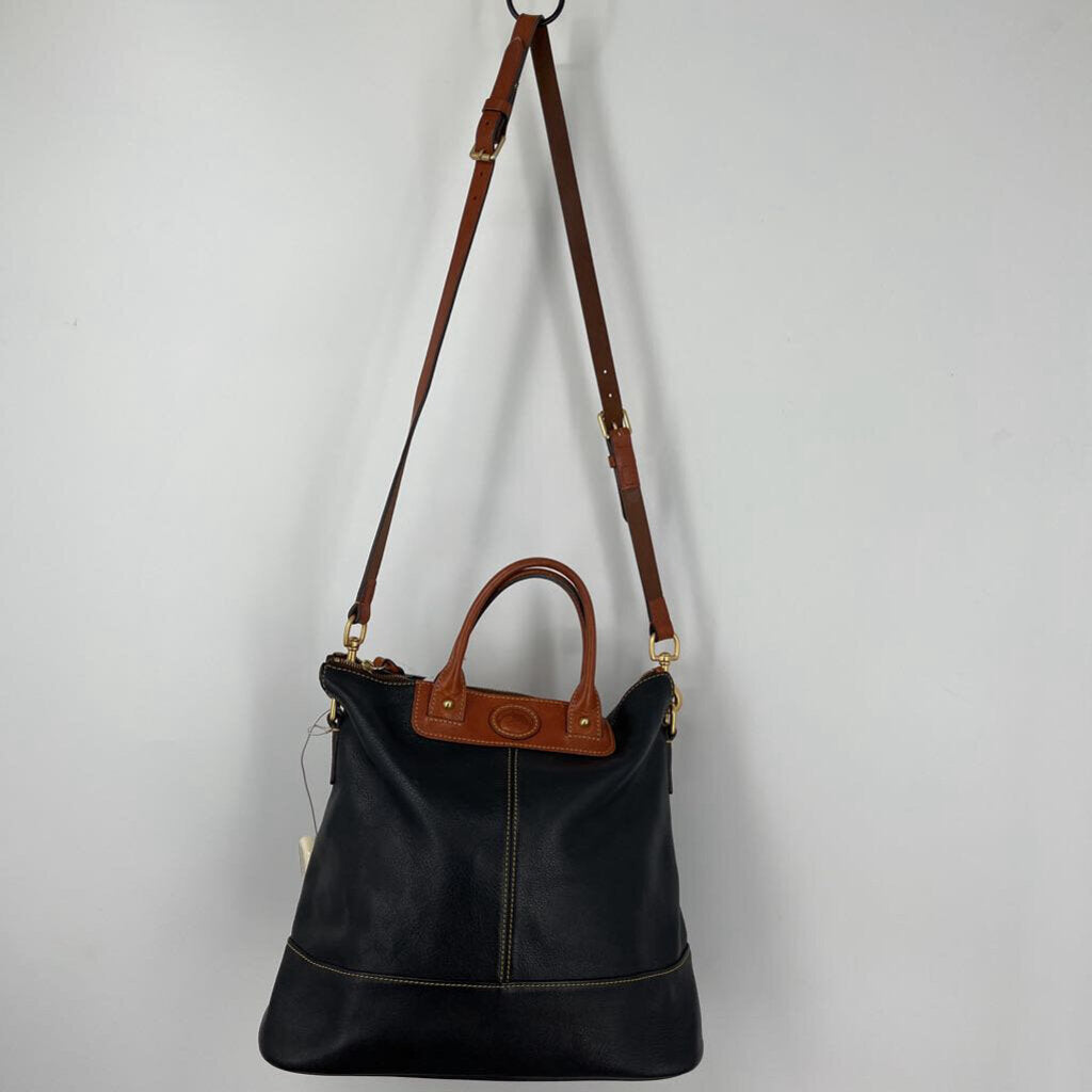 Double Top Handle Leather Purse, Crossbody Strap, Zip Close, Suede Lined