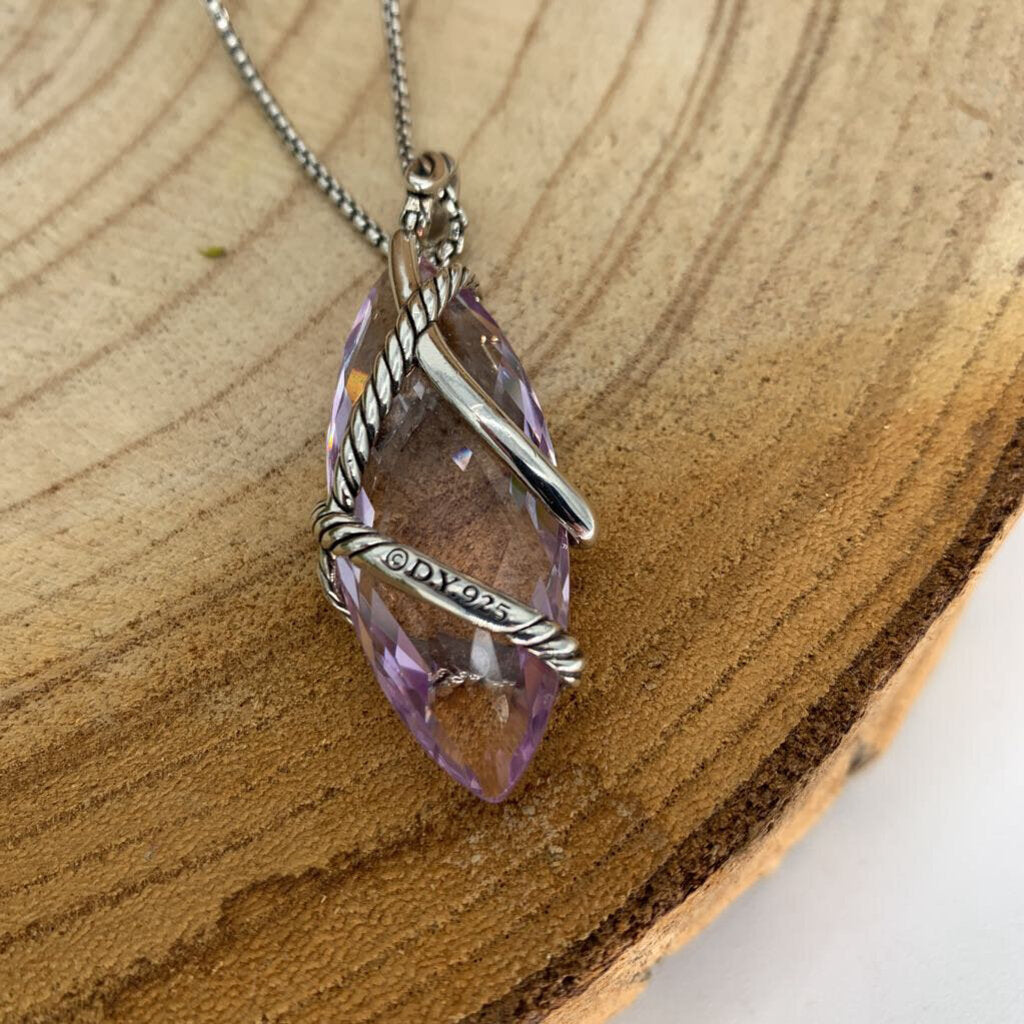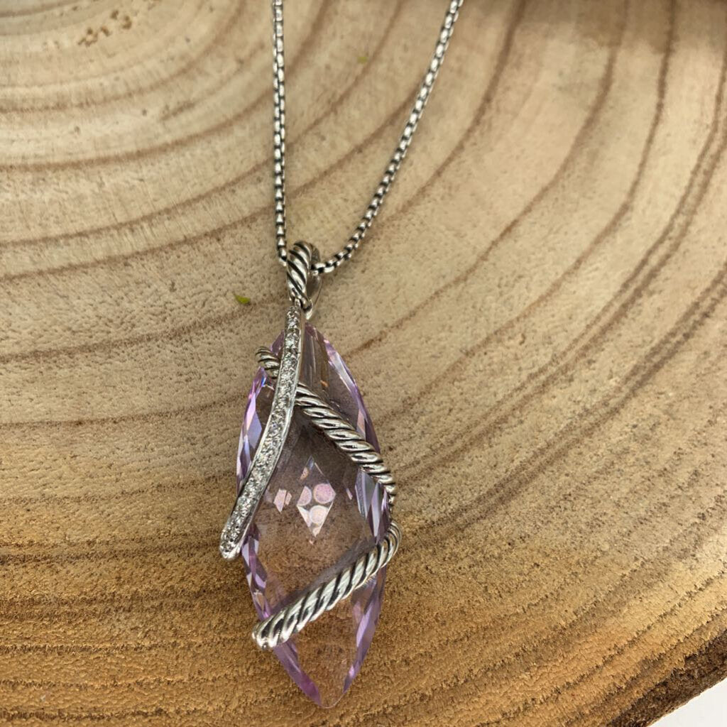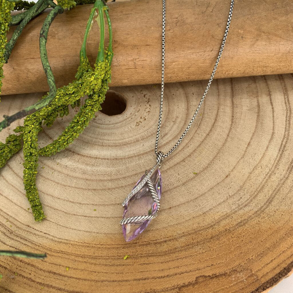 Sterling Silver Chain, Faceted Amethyst Pendant with Sterling and Diamond Accents