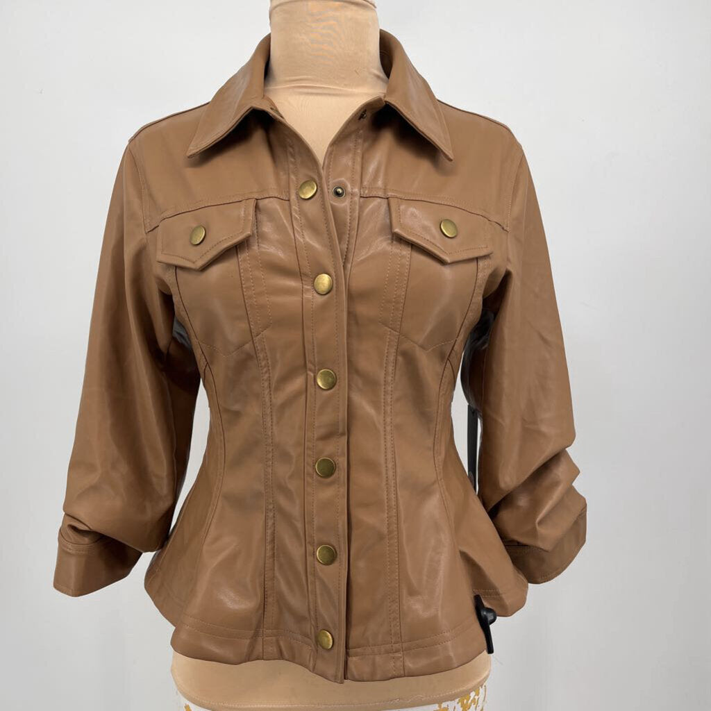 3/4 Gathered Sleeves, Snap Button, Faux Leather, New with Tag