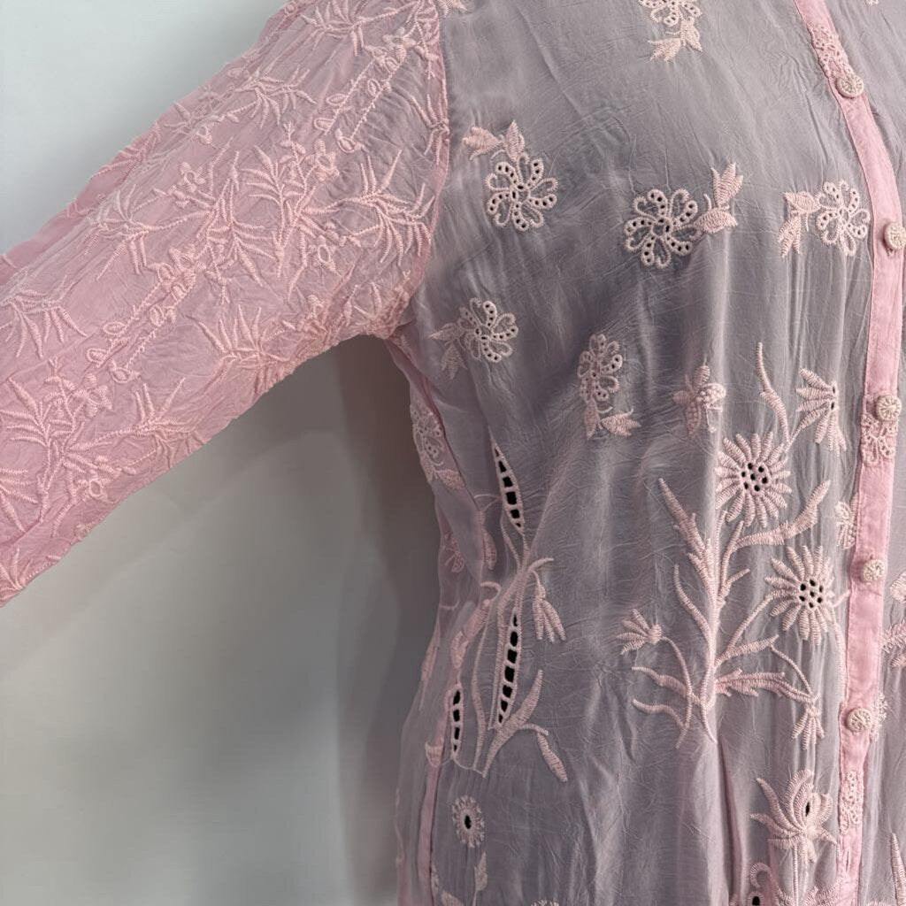 Long Sleeve, Floral Eyelet, Button Up, Cupra Rayon