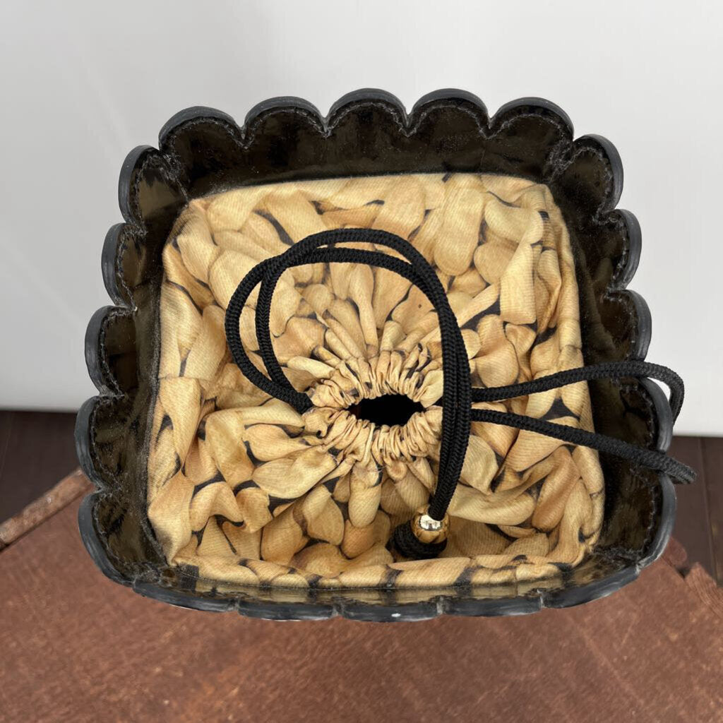 Leather Stripe Purse with Textile Peanuts Print Drawstring Liner