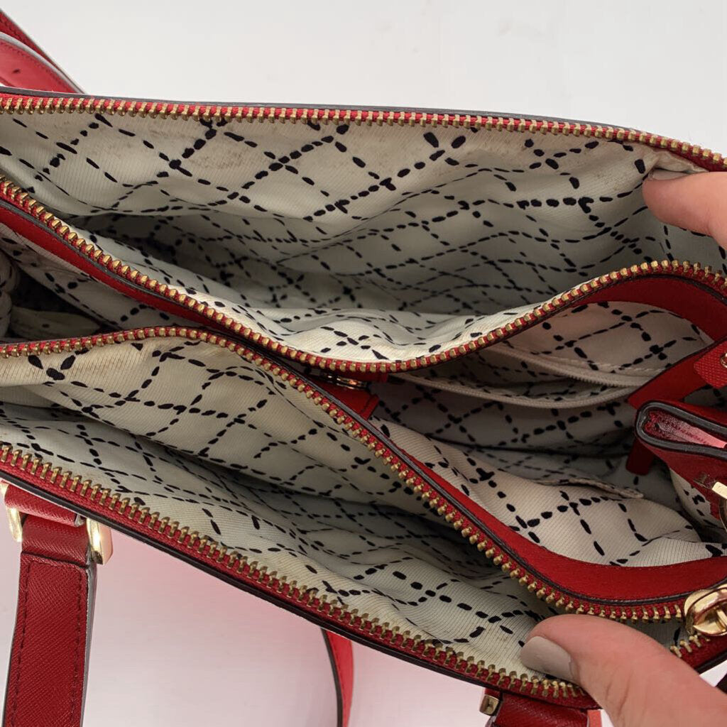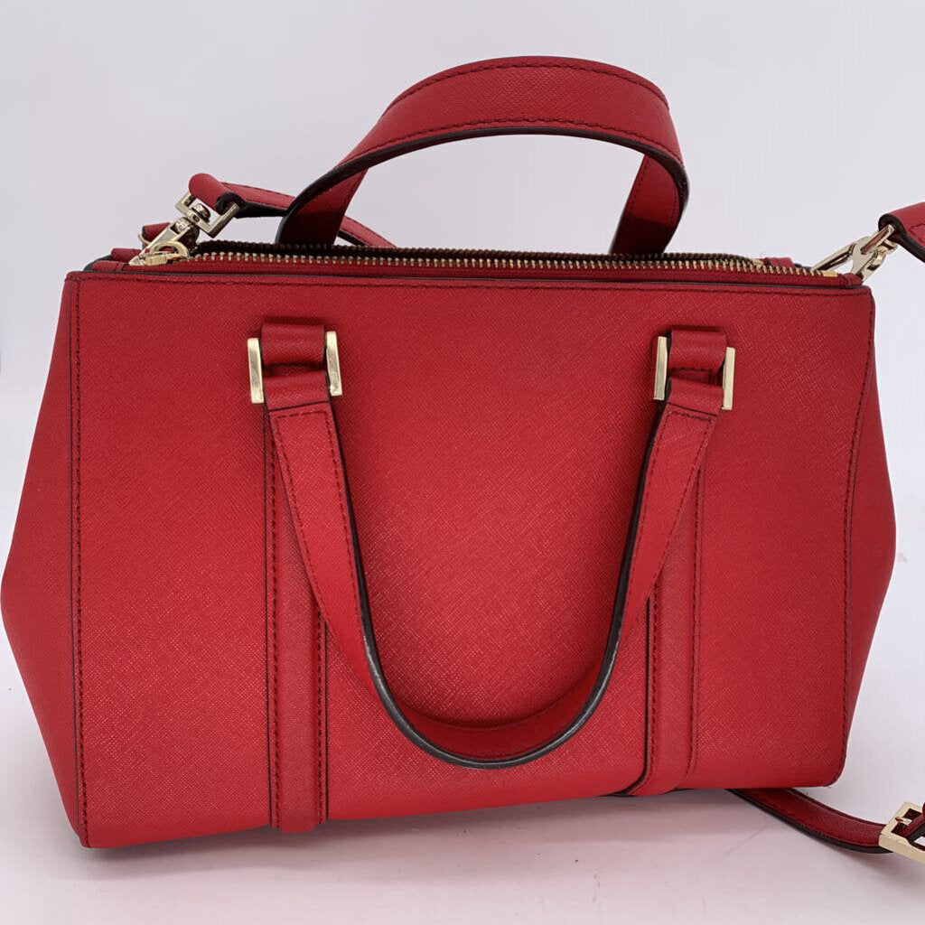 Double Top Handle Leather Purse with Crossbody Strap, Two Zippered Compartments and Center Snap Pocket