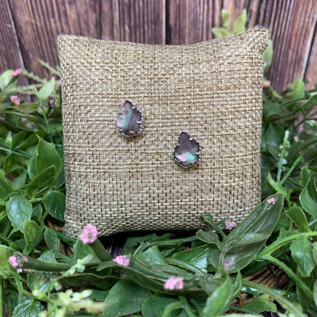 Silver Tone Metal and Iridescent Crystal Stud Earrings, Post Backs