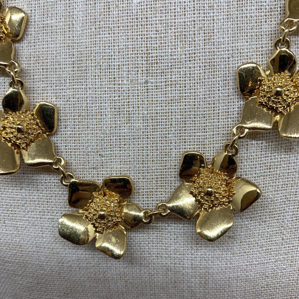 Gold Tone Flower Links, Lobster Clasp