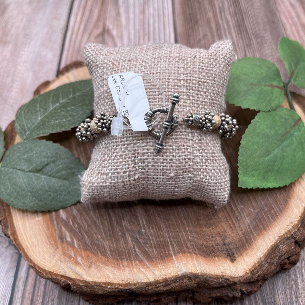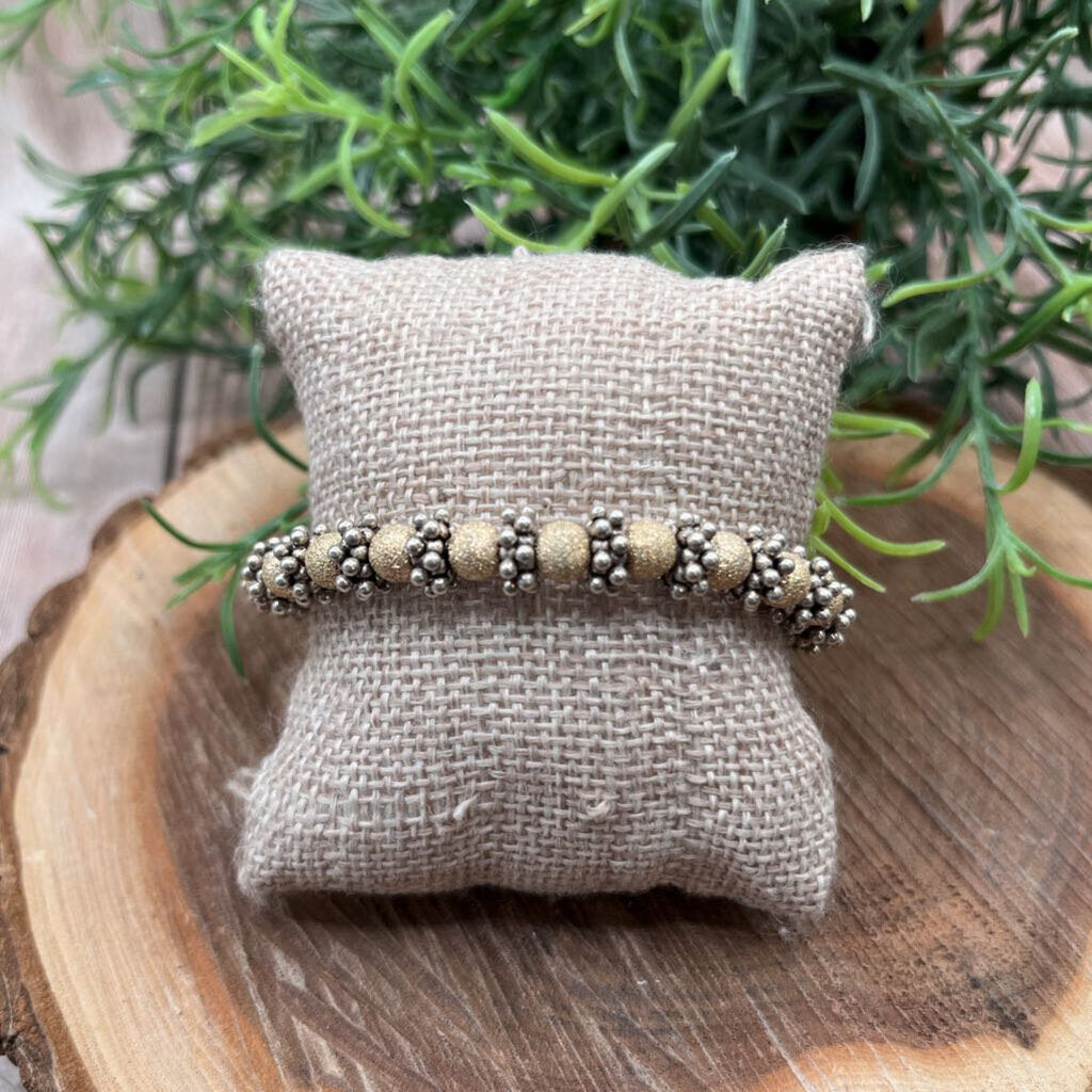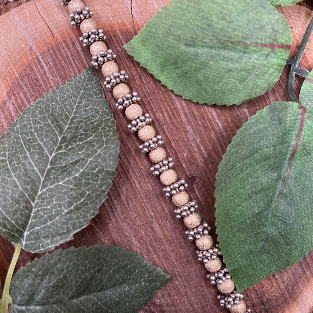 Metallic Gold Tone Beads, Sterling Silver Popcorn Texture Spacers, Sterling Toggle Clasp
