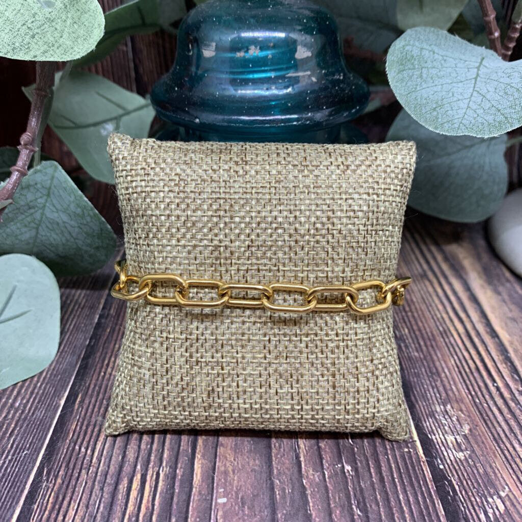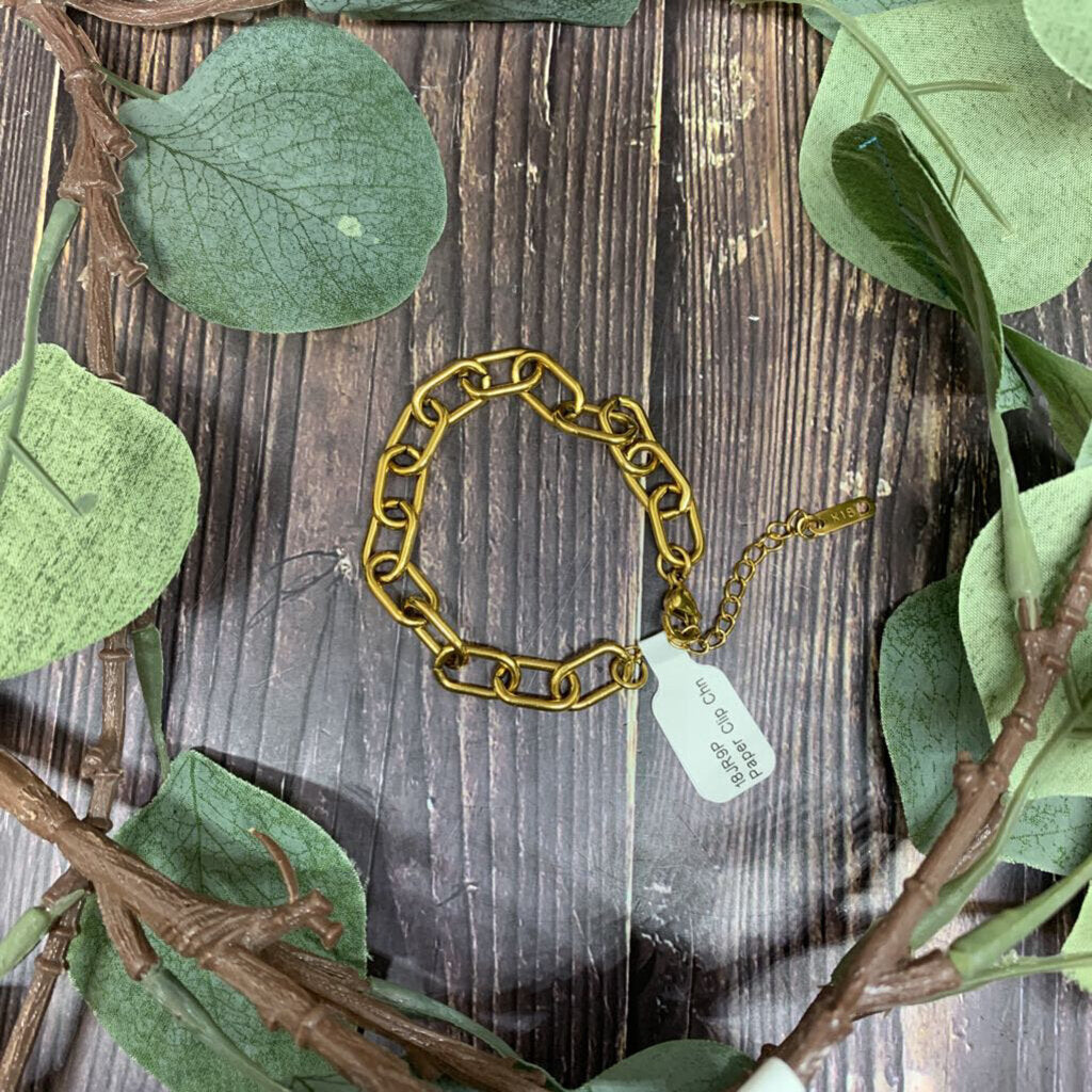 18k Gold Coated Stainless Steel Paper Clip Chain Bracelet, Lobster Clasp