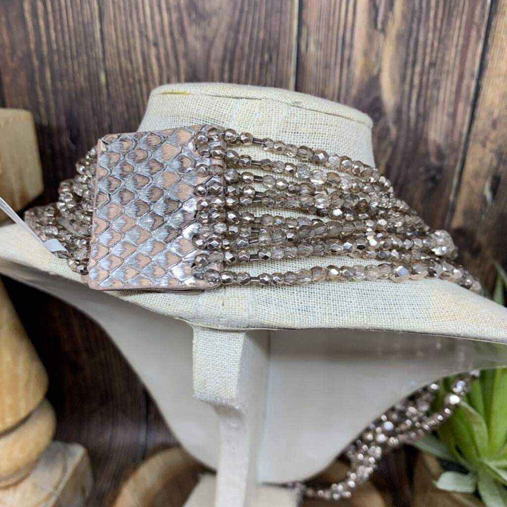 Multi Layer Cut Crystal Bead Strans, Python Skin Magnetic Closure.