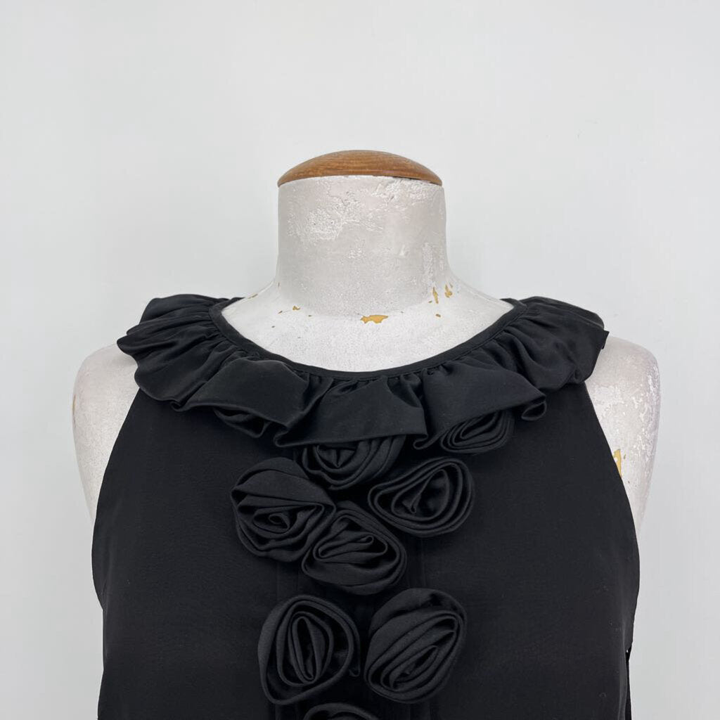 NWT, Ruffled Neckline with Rossette Trim, Sheer Lined, Side Zip