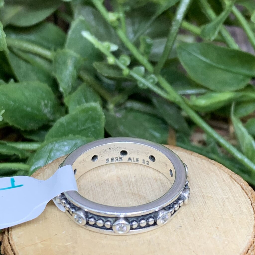 Sterling Silver Band with Inset Round White Stones