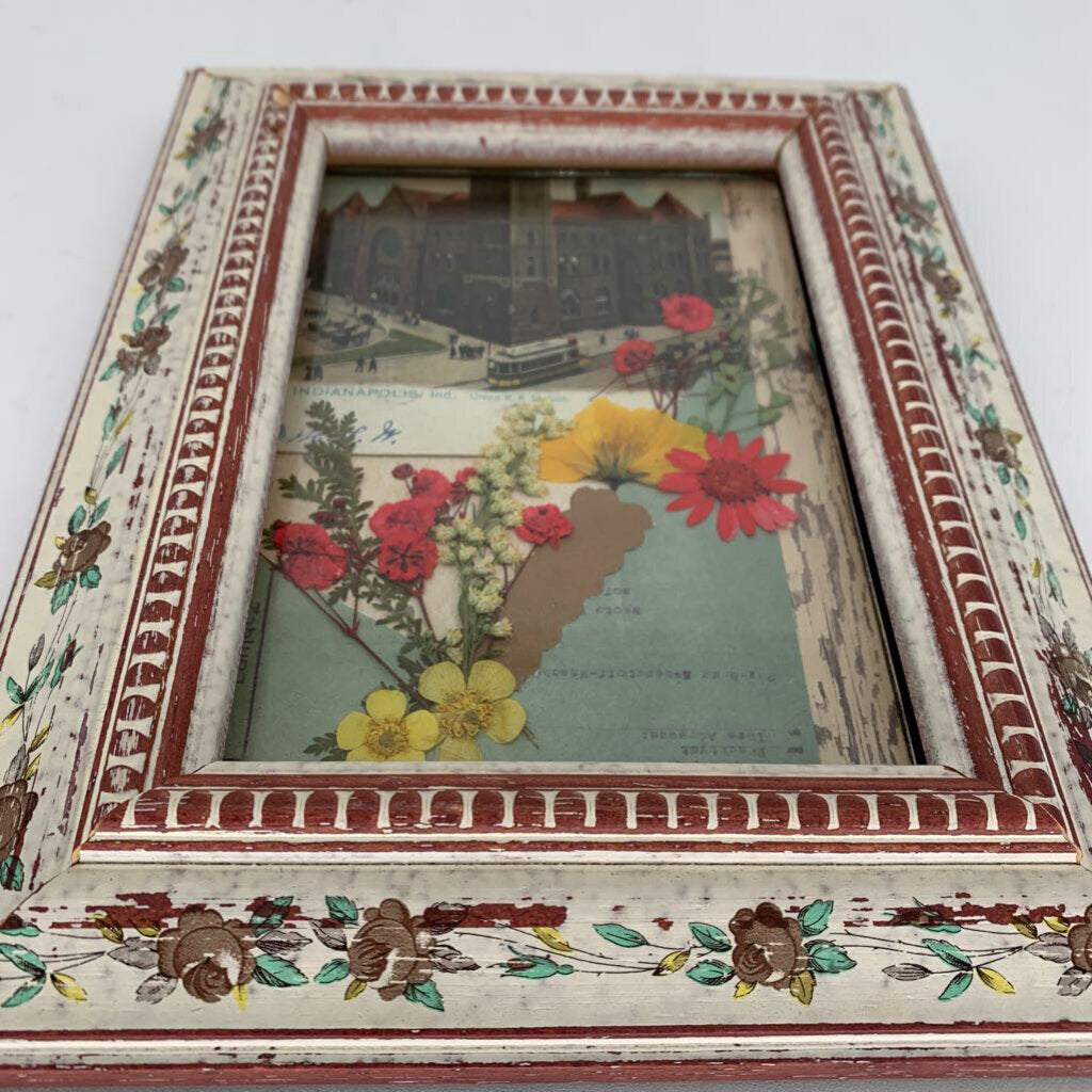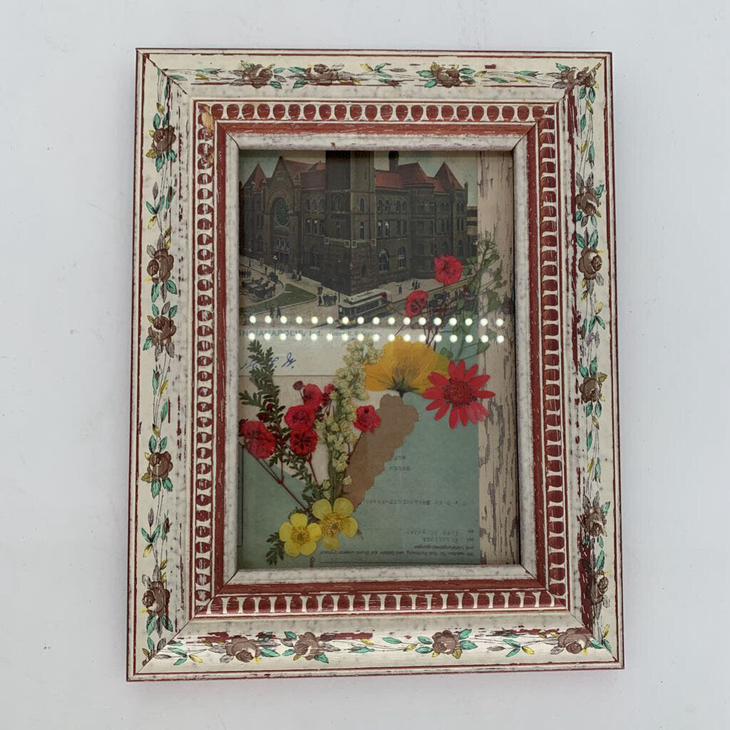 Distressed wooden frame with flower pattern, pressed flowers, with Union Station scene