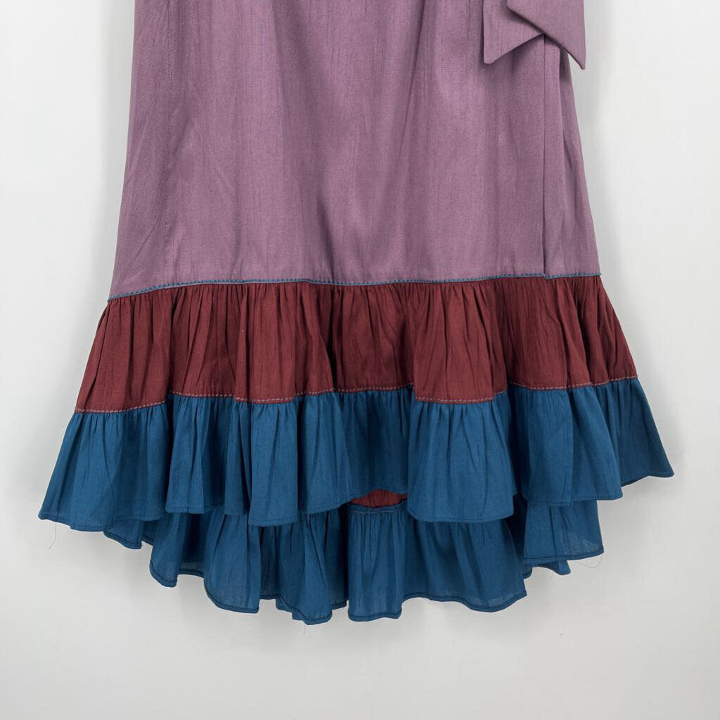 zips down side, large bow at side, maroon/blue at bottom, below knees, NEW
