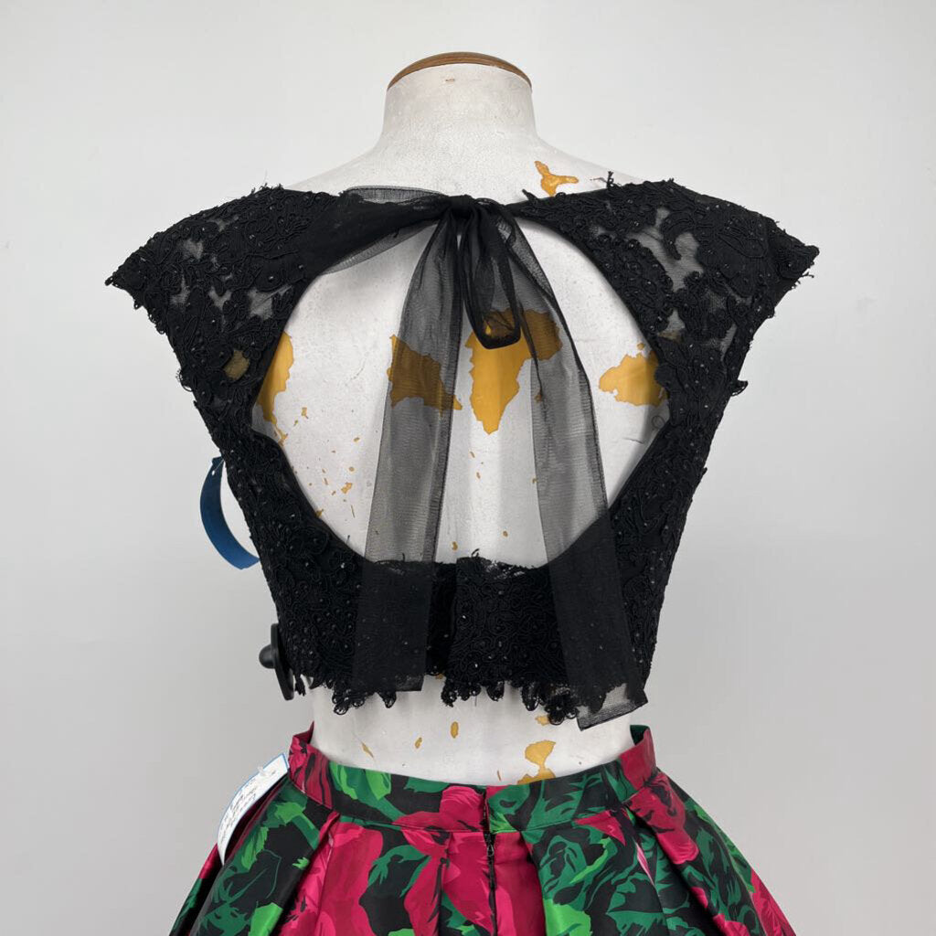 Satin Floral Short Full Skirt, Sleeveless Lace and Bead Top