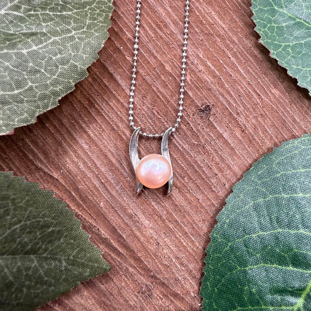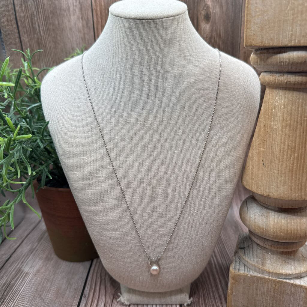Sterling Silver Bead Chain, Solitaire Pearl Pendant