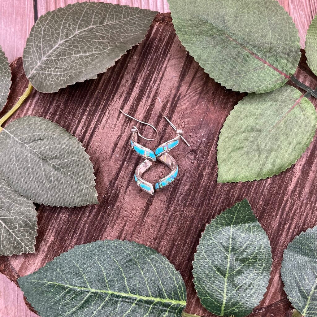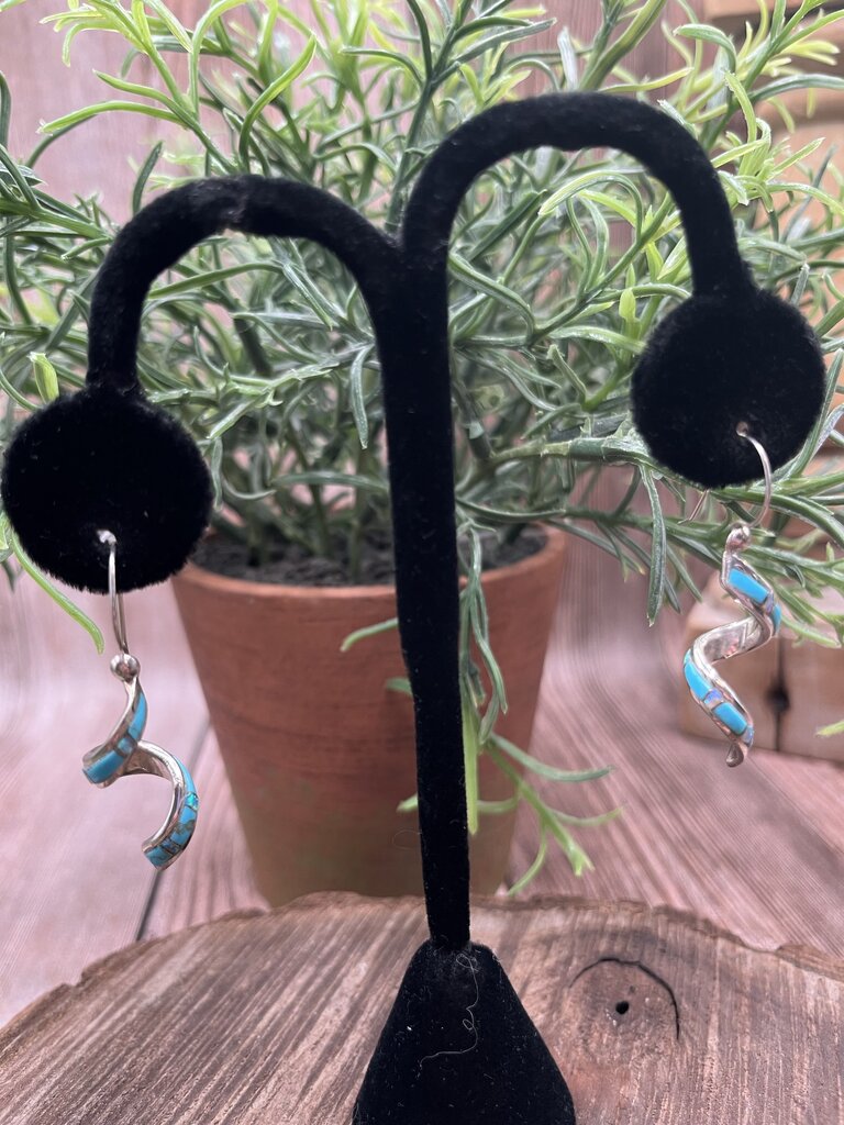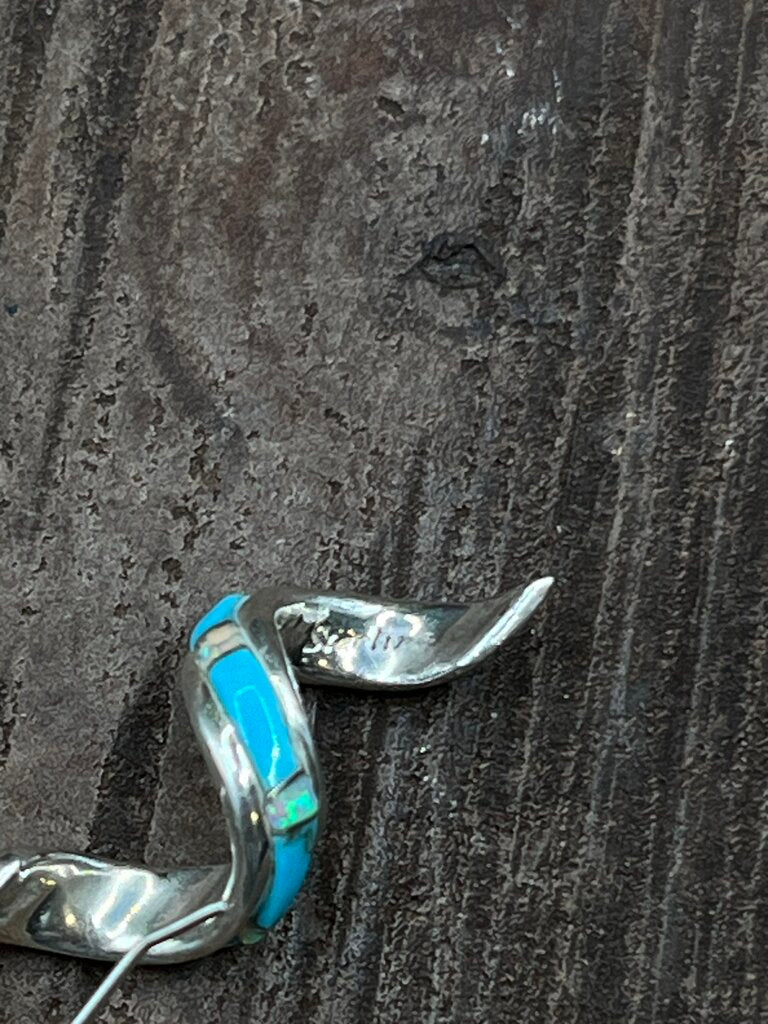 Sterling Silver and Turquoise Color Stone Spiral Earrings