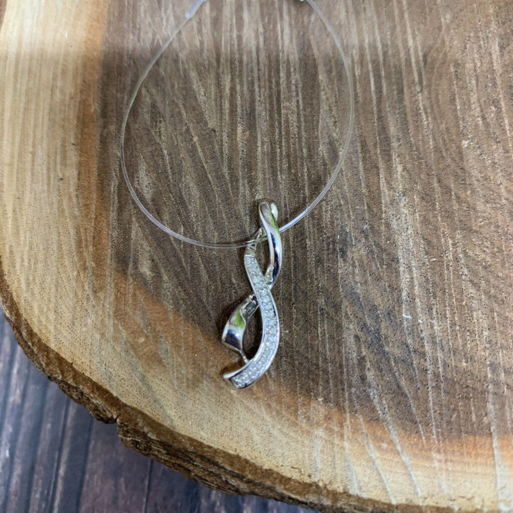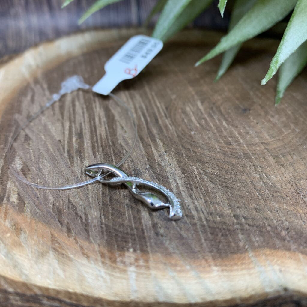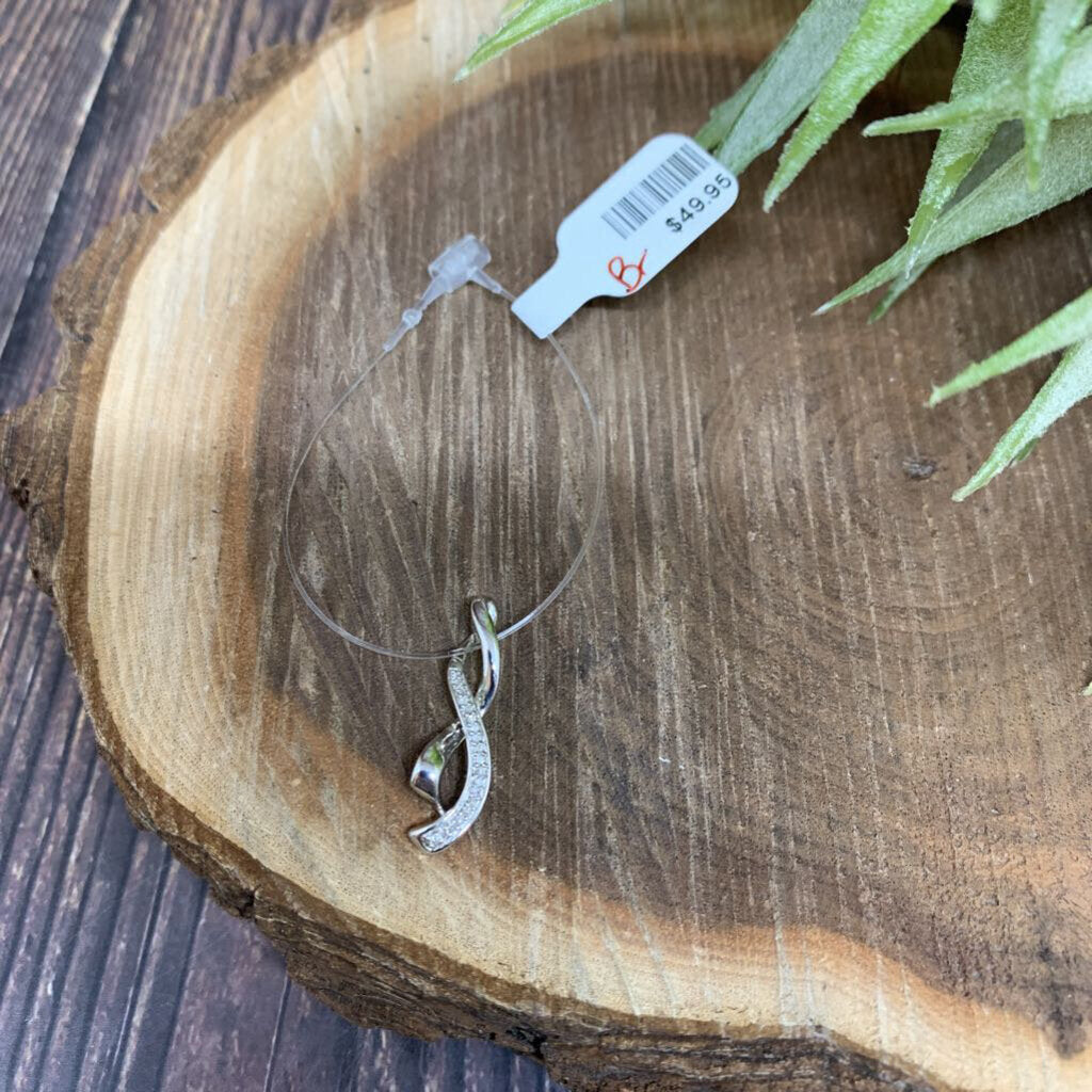 Sterling Silver Ribbon Pendant with Diamond Chips