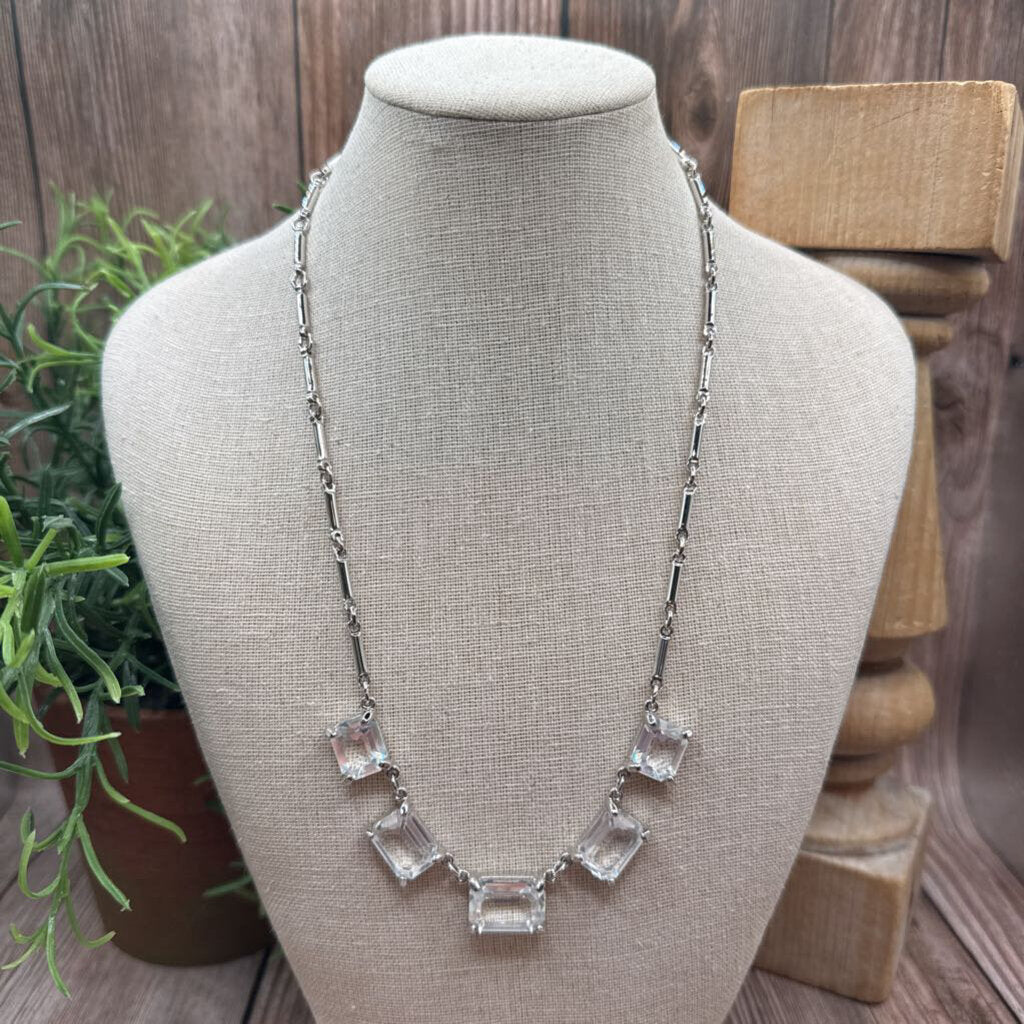 Silver Tone Chain, 5 Emerald Cut Crystals, Lobster Clasp
