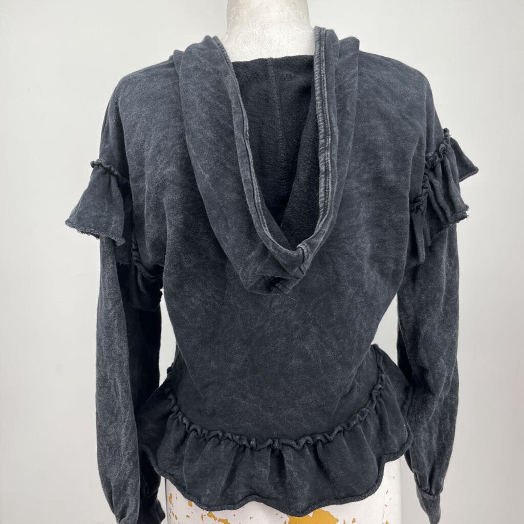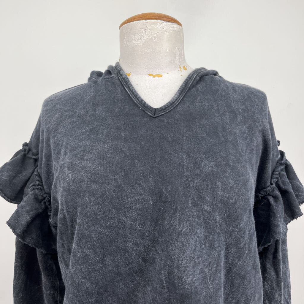 v-neck hooded, ruffled