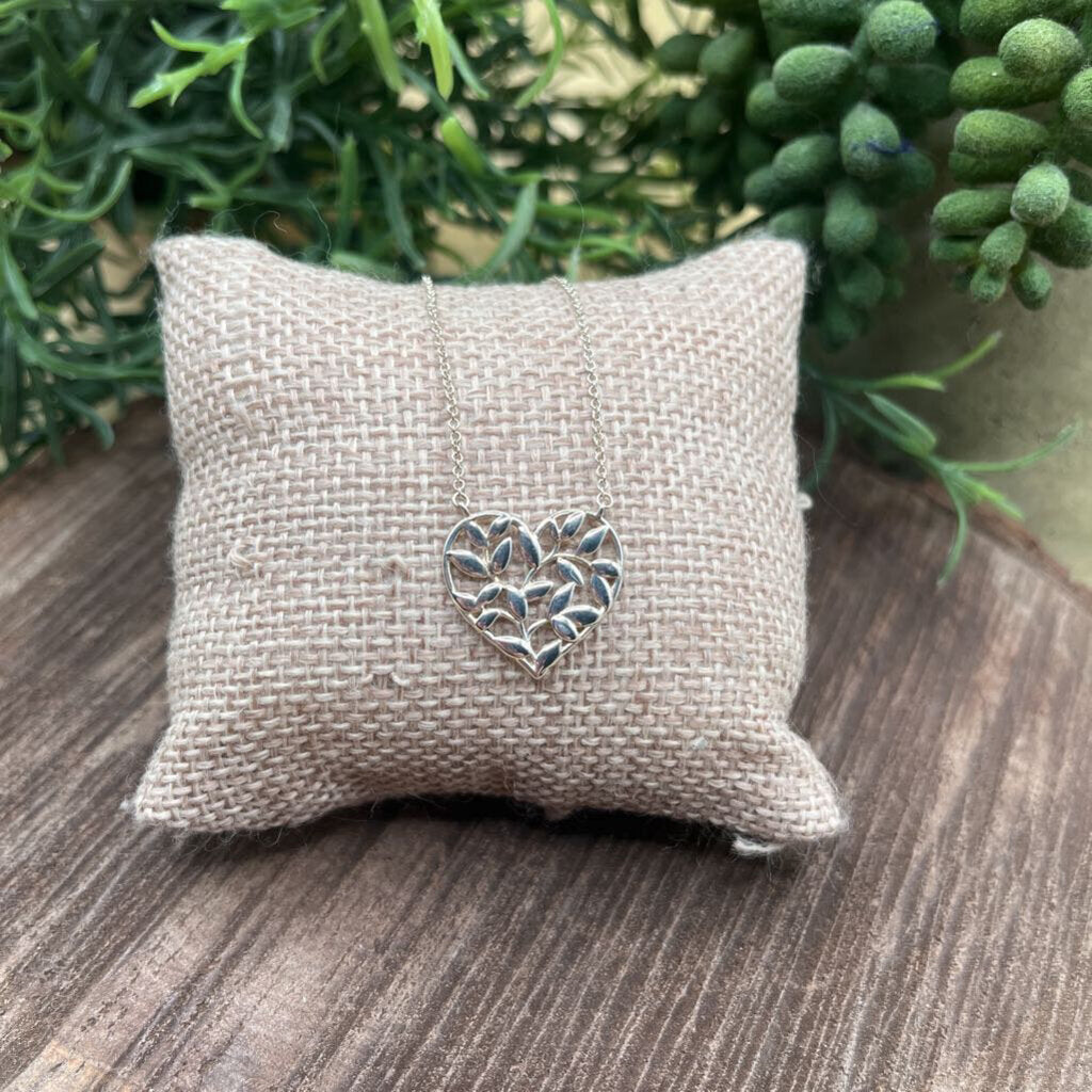 Sterling Silver Chain, Sterling Heart Pendant with Olive Branch Motif