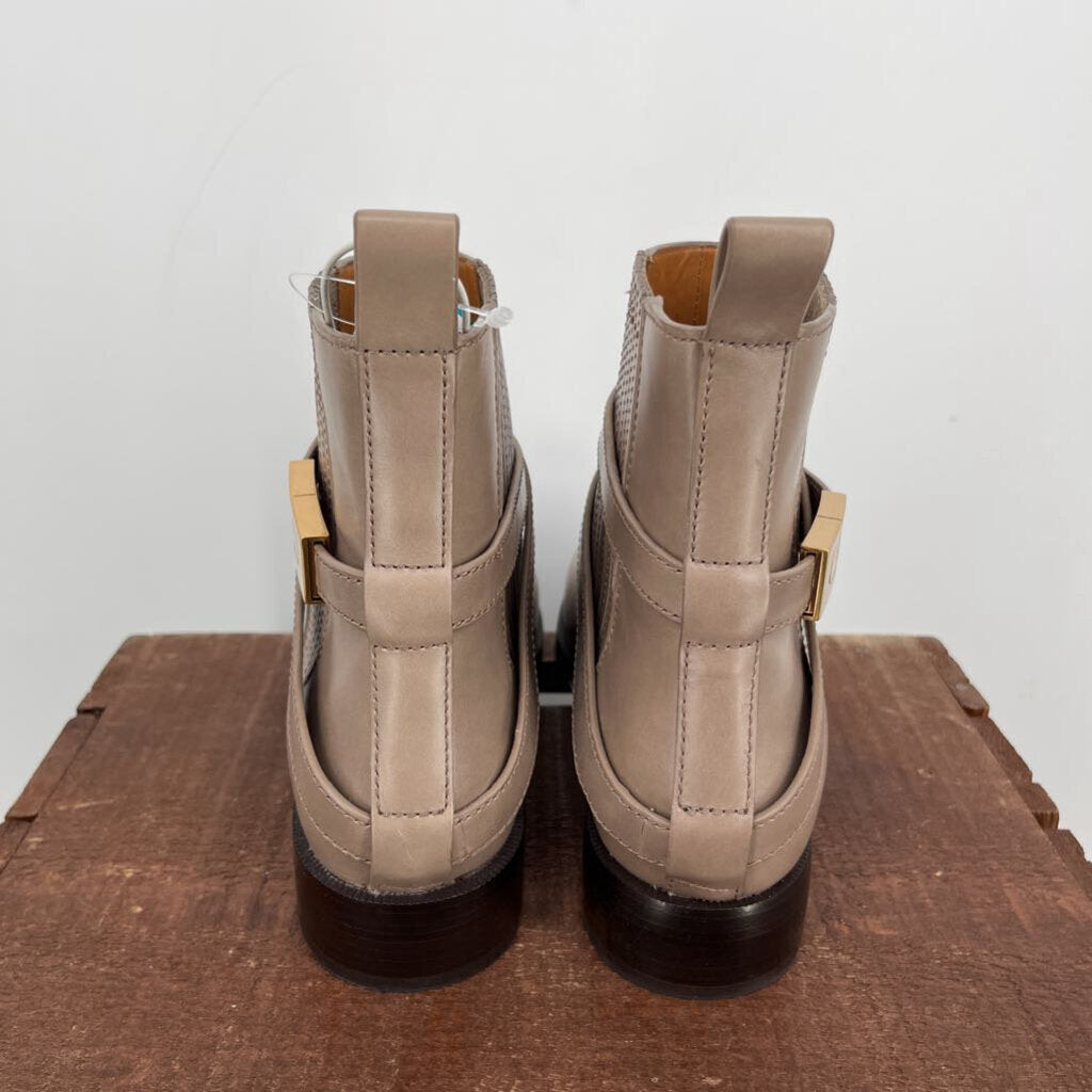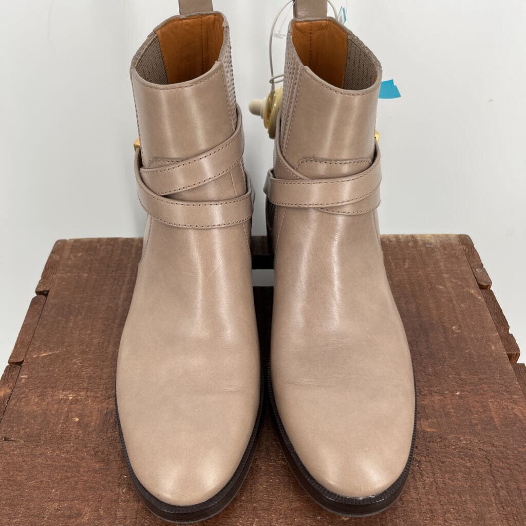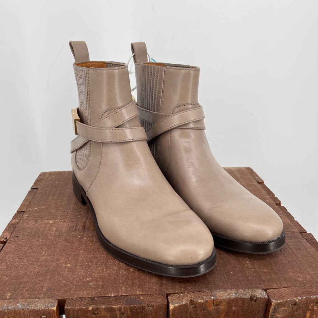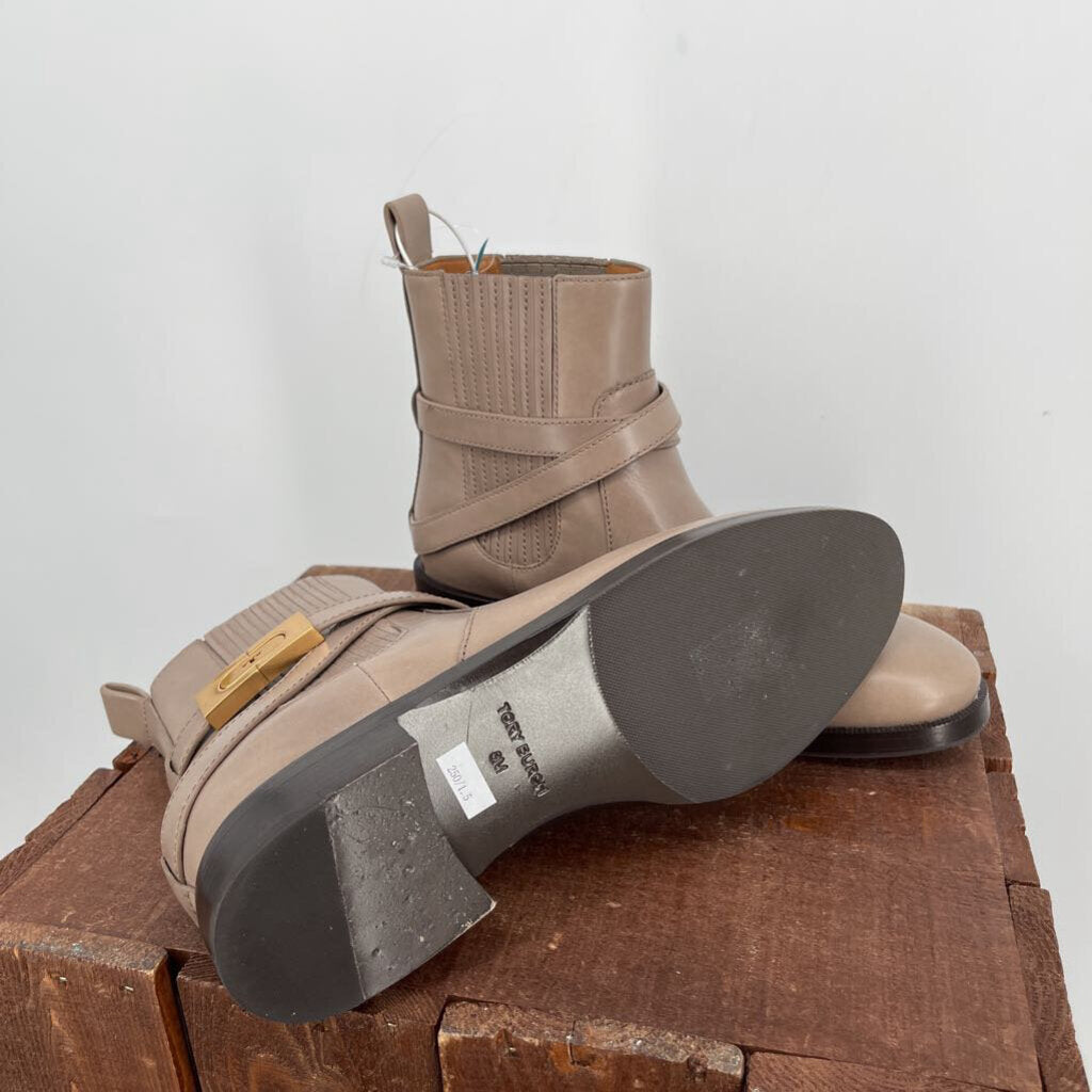 Leather, Chelsea booties, gold hardware, wrap around leather straps