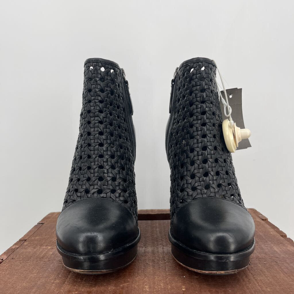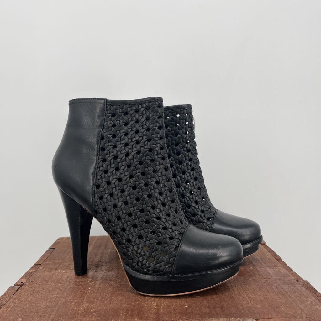5" heel, woven mid section, zips up side