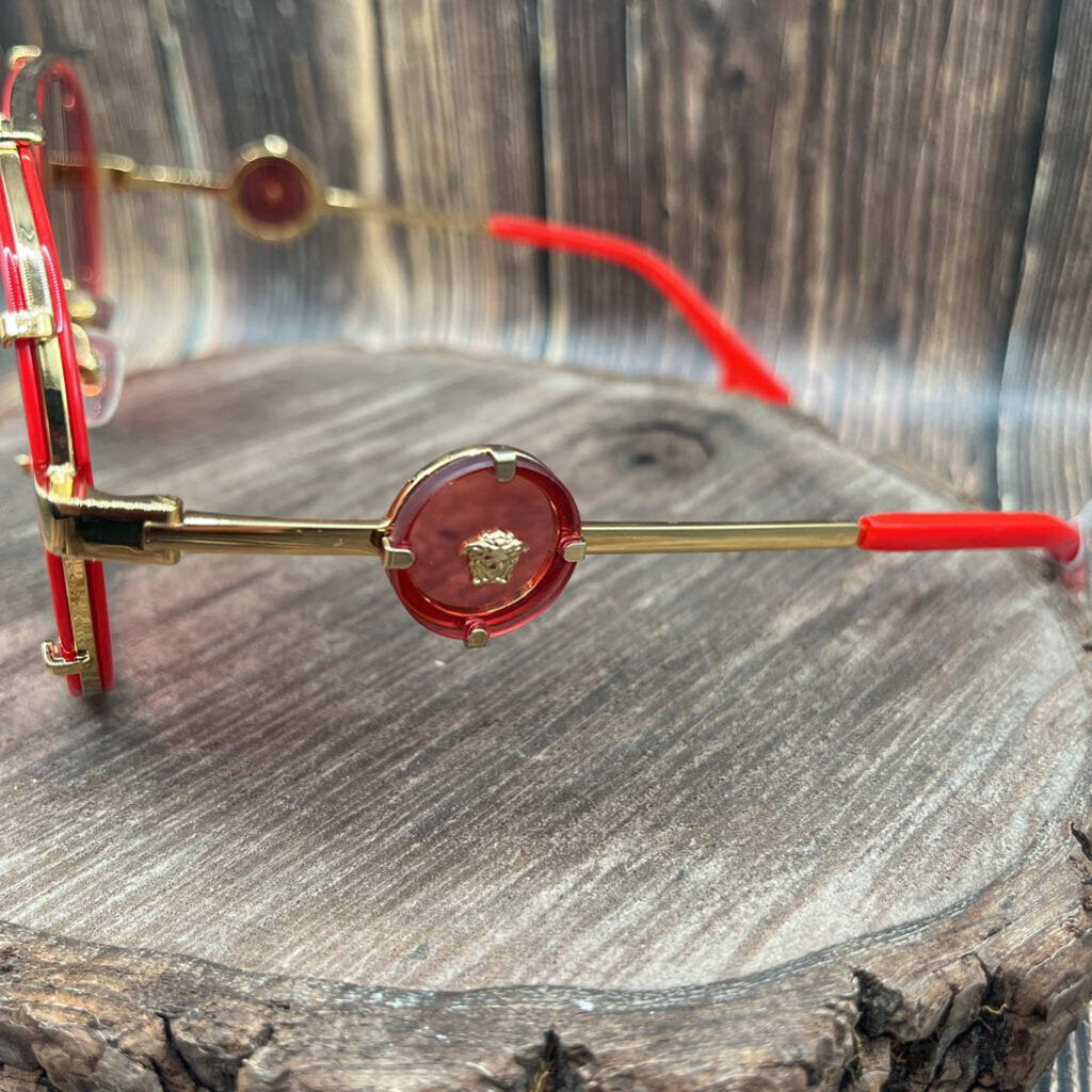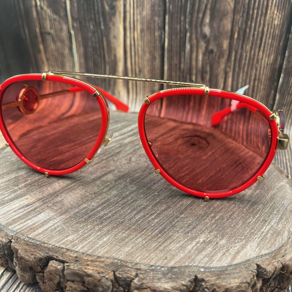 Pilot Style Frames, Red Tint Lenses, includes strap, hard case and box