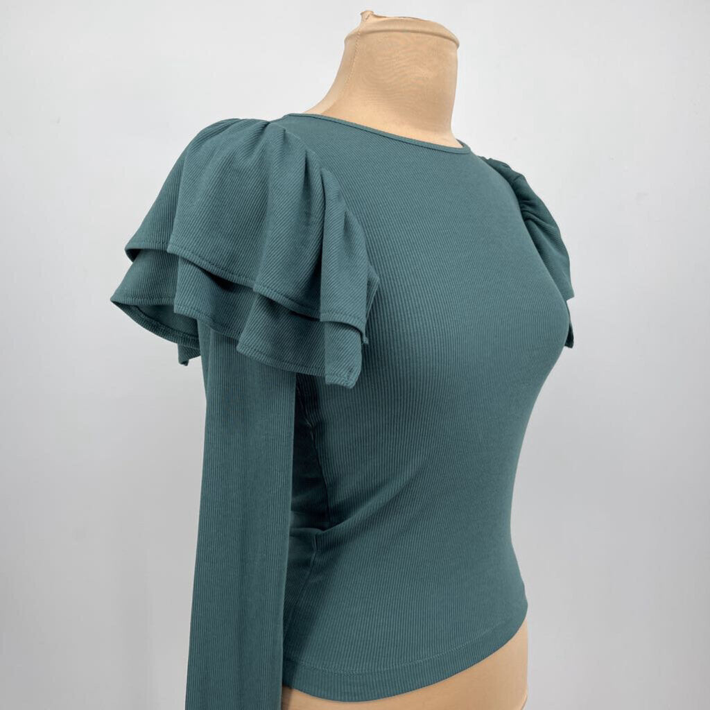 Long Sleeve, Ruffle Shoulder Trim, Rib Knit, New with Tag