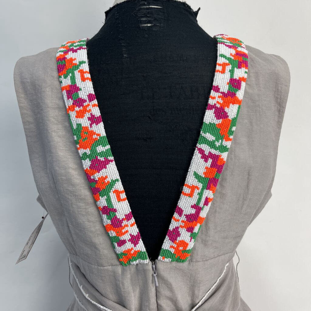 Size 12, beaded V neck, maxi length, V back